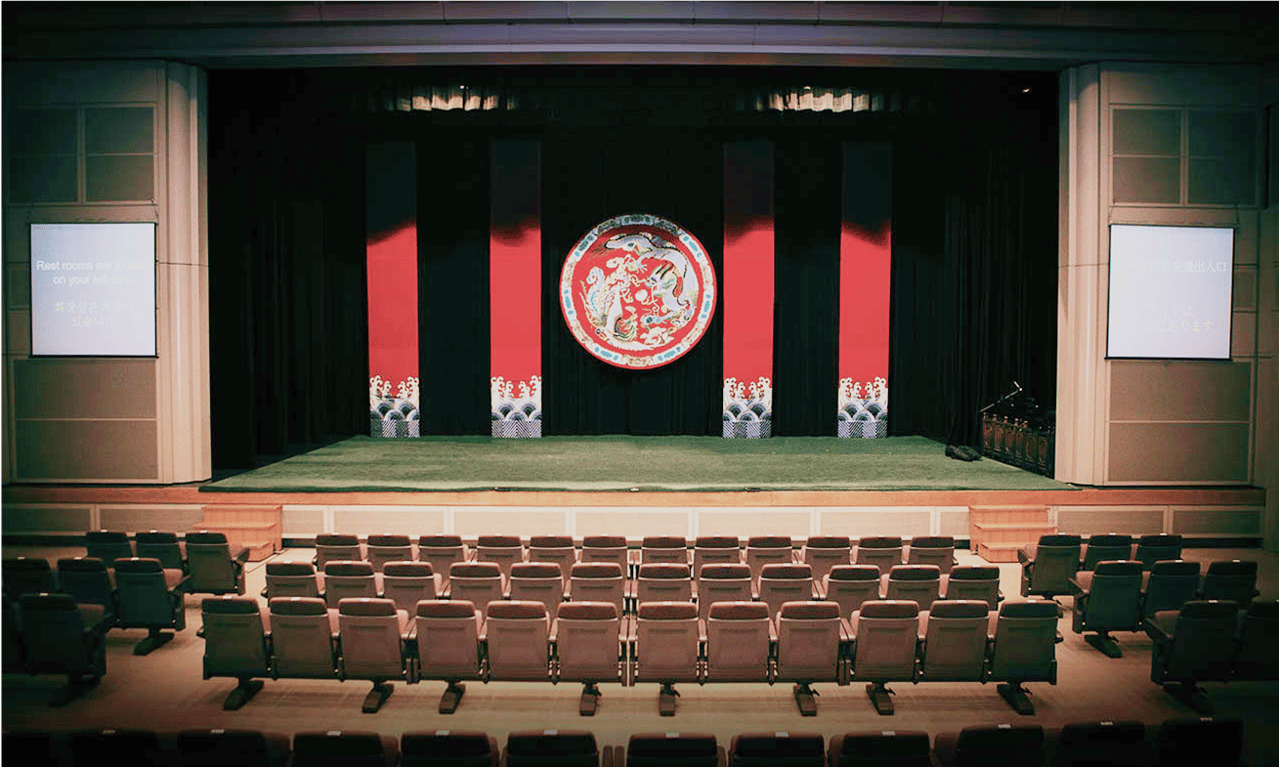 舞臺表演區深度750公分、寬度1200公分;舞臺左側有一側舞臺空間。