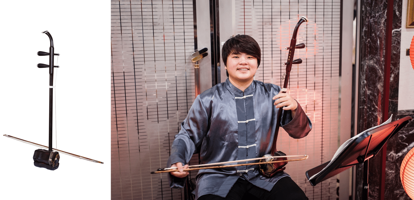 二胡是一種弓弦樂器。有兩根弦,現代二胡以純五度定弦,在胡琴之中屬於中高音域樂器。製琴師通常以木材製作二胡,琴筒一端以蛇皮製成,是二胡獨特音色的來源。二胡弓的標準長度為816mm,其等級以竹材的直徑區分,弓桿由富彈性的竹所製,而弓毛用馬尾毛製成,以白馬尾為佳。