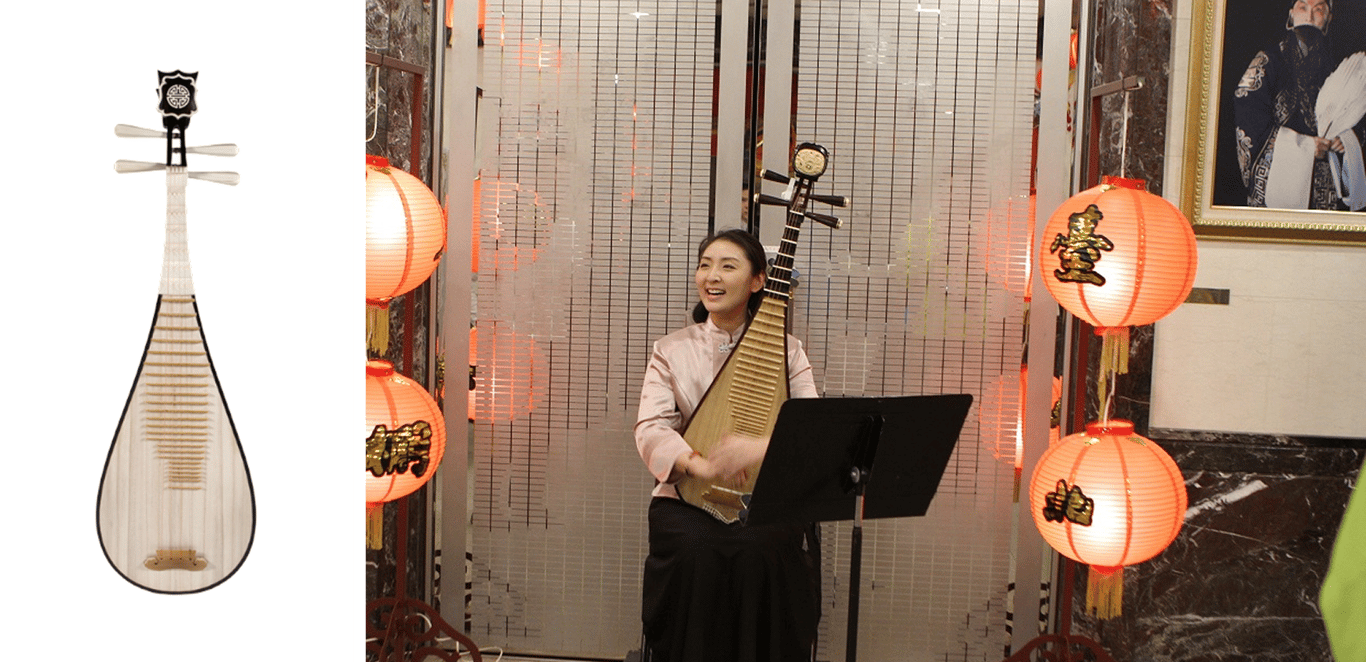 琵琶始於秦漢,圓形直頸,音箱呈半梨形,是民族音樂中較完善的一種彈撥樂器。它最早是橫抱,只作為演唱的伴奏樂器,後來改為直抱,五指彈撥,演奏技巧逐漸豐富,成為獨奏樂器。